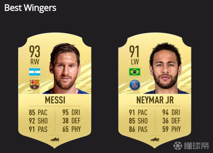 《FIFA 21》官网公布了游戏中所有球员的能力值。在边锋和边前卫中,梅西以93分的总评高居榜首,而他的前队友内马尔位列第二。