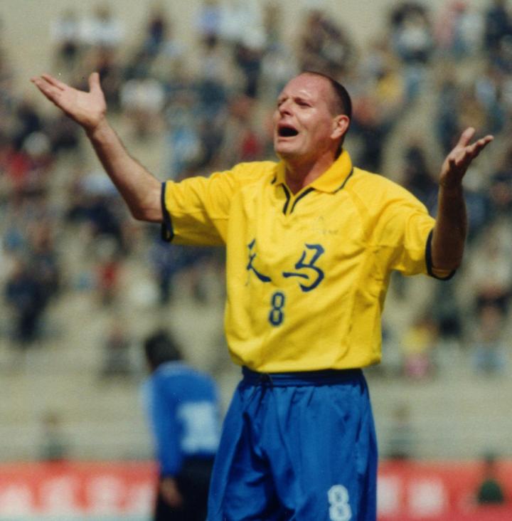 保罗-加斯科因,昵称“加扎”,英国足球的代表人物之一。在意大利世界杯的半决赛,加斯科因吃到黄牌,铁定缺席决赛时,他泪流满面的一幕让无数球迷动容。在1996年欧洲杯,加斯科因挑球过人后抽射破门,也成为欧洲杯历史上的永恒经典。