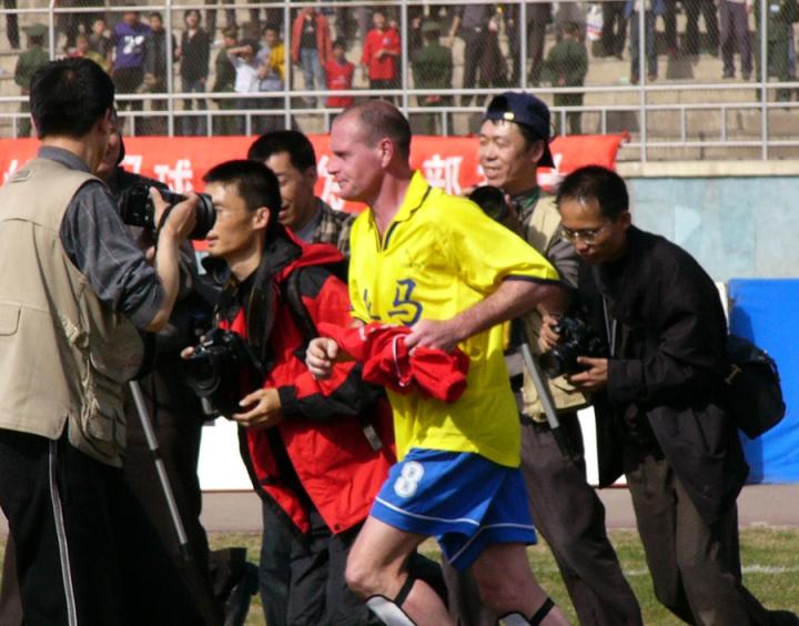 2003年3月29日,甘肃天马坐镇主场七里河体育场,迎来青岛澳柯玛队。这是加斯科因在中国的首秀。12000名甘肃球迷涌进场内,想要一睹国际巨星的风采。