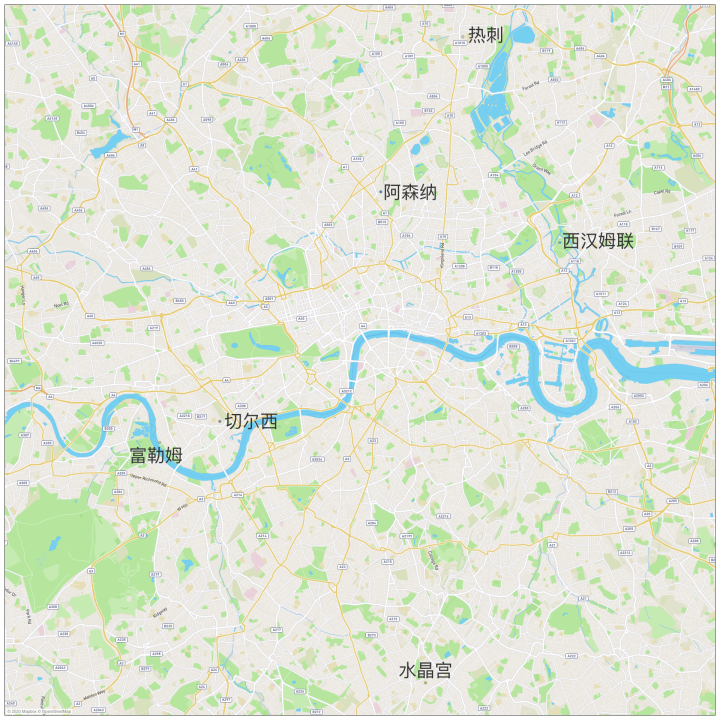 英超20支球队的地理位置