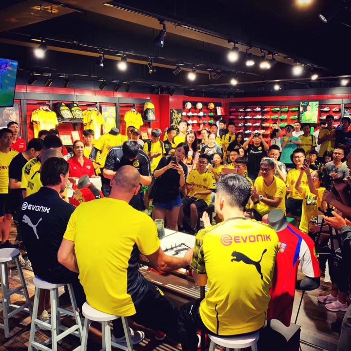 我们尝试以线上和线下相结合的形式与球迷互动。我们在北京、上海和广州都举办过球迷活动。我们会让球迷身临其境,近距离接触训练场上的球员。训练结束后球迷们也有机会与球员交流,收到球员赠予的签名球等。此外,我们在上海还有一辆黄黑涂装的球队主题大巴,我们的球迷和合作伙伴都是这辆大巴的客人。总的来说,我们尝试各种线上和线下的活动。能在中国举办这么多球迷互动活动是我们的荣幸,中国是为数不多能让我们大施拳脚的国度。