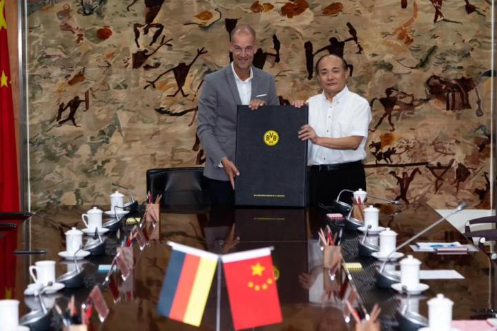 这是一项非常重要的合作。合作涵盖不同层级,包含丰富的多样性。多特蒙德派遣了教练员和青训管理人员到秦皇岛工作,结合北体大的青少年足球理念进行训练。另外,在国际旅行得到保障后(疫情结束后),北体大也将选拔教练员前往多特蒙德接受培训。我们计划与北体大共同举办友谊赛和各种商业活动,这也意味着我们的合作面非常宽广。我们非常看好与北体大的合作,因为这是一所著名的、敢于革新的高等院校。我们对这项合作感到骄傲。