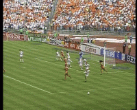 古利特亲自操刀主罚,其高质量的任意球打门被苏联门将托出横梁,然后便有了上面的角球回合,诞生了首开纪录的头球破门。