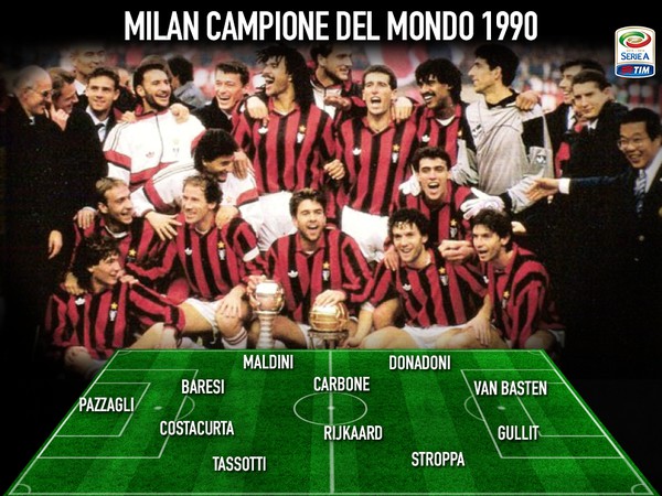 随后的1988-89以及1989-90欧冠两连霸,则是彻底奠定王朝的美钻。尤其是1989年欧冠决赛4-0战胜布加勒斯特星一战,更是经典中的经典——米兰的4粒进球全部由两名荷兰前锋所包办,古利特和范巴斯滕各入两球,在涌入了97,000名观众的诺坎普球场耀武扬威。