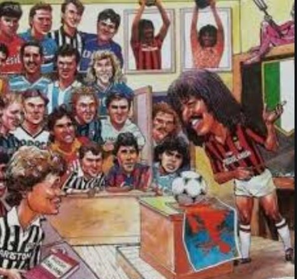 1987-88赛季,完成处子赛季的古利特带队夺得意甲冠军,通过这张后世广为人知的漫画,我们便可认识到当时初来乍到的古利特在意甲地位如何。