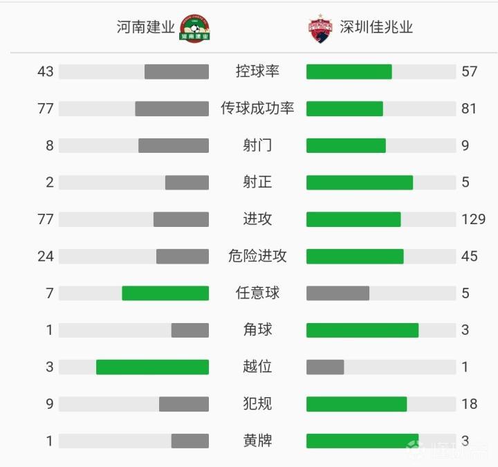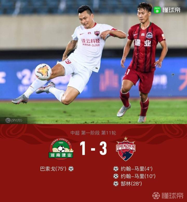 全场战罢,河南建业1-3深圳佳兆业。