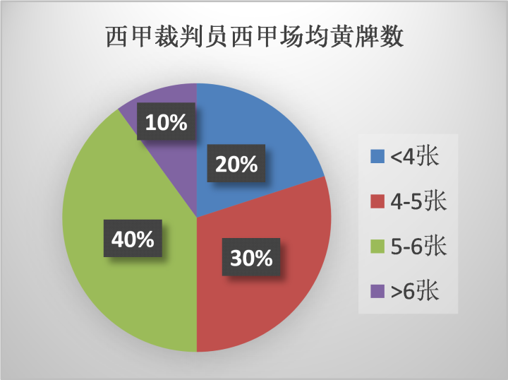 从总体上看,西甲20位裁判员中有半数的场均黄牌都达到了5张以上,其中还有两位6张以上的。与上赛季不同的是,本赛季出现了4位场均黄牌在4张以下的裁判,这些也是西甲为数不多的松哨。