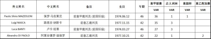 (图)2020/2021赛季意甲意乙联赛裁判员大名单