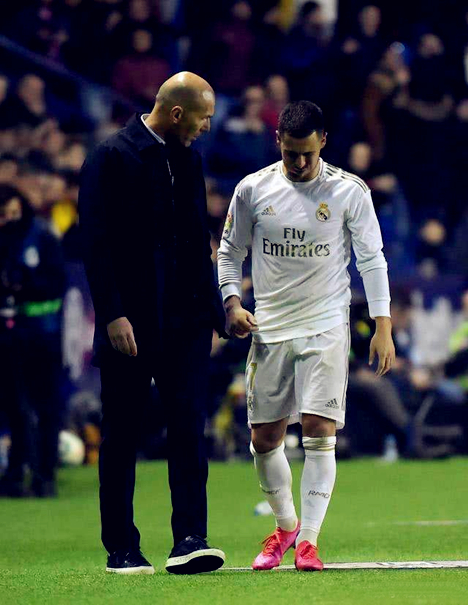在加盟皇马的第一个赛季中,队史标王阿扎尔缺席了约2/3的比赛,齐达内被迫走马灯一般地变换前场配置,未能解决锋无力难题。缺少了阿扎尔,皇马锋线的突击能力和传中质量受到了影响,中场也失去了一个稳定可靠的推进点,本泽马回撤参与中场传递导致无人能够参与禁区抢点。齐达内将厄德高视为连接锋线和中场的纽带,令人担忧的是挪威人的膝盖伤势,皇马已经承担不起“第二个阿扎尔”带来的折磨。