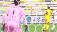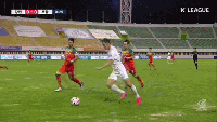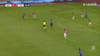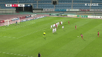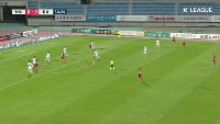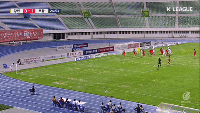 0-2落后的江原不甘心失利,他们开始连续通过远射威胁对手球门,但浦项门将姜贤茂成为了江原球员无法逾越的一环。半场结束,江原0-2落后。