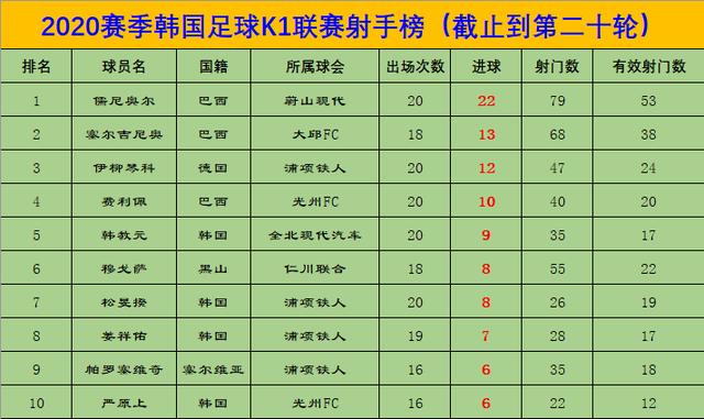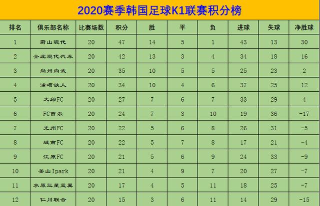 韩国足球新闻韩国当地时间9月12~13日,2020赛季韩国足球K1联赛第20轮进行了新一轮的争夺。在这一轮中,只有2场比赛出现了0-0的比分,其余4场都有进球,其中光州FC和全北现代汽车共打入6球,是本轮进球最多的比赛,其余四场比赛共打入8球,总计14球,场均2.3球,这个效率和上轮相比有所下降。不过考虑到一周双赛的情况,各队在人员选择上有所取舍,比如尚武派遣大批替补出战等,这样的效率还是可以理解的。而在本轮,积分榜前两位的“现代双雄”继上轮之后依旧没有赢球,这也让周中的“天王山之战”充满了悬念。(注:截止笔者发稿时,第21轮已经打完,全北2-0击败蔚山,缩小了差距。)而引人瞩目的“国家德比”,FC首尔在主场2-1击败了水原三星蓝翼,也让对手再度俯首称臣的同时,保级形势再现危机。下面我们就来简单回顾一下这轮的六场比赛。