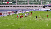 不过进球之后的首尔没有高兴太久,首尔球员郑涵旻禁区内防守金泰焕犯规,水原获得点球,廉基勳骗过梁汉彬将球打入,1-1,双方重回同一起跑线。