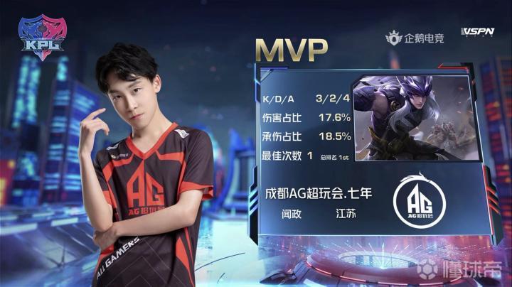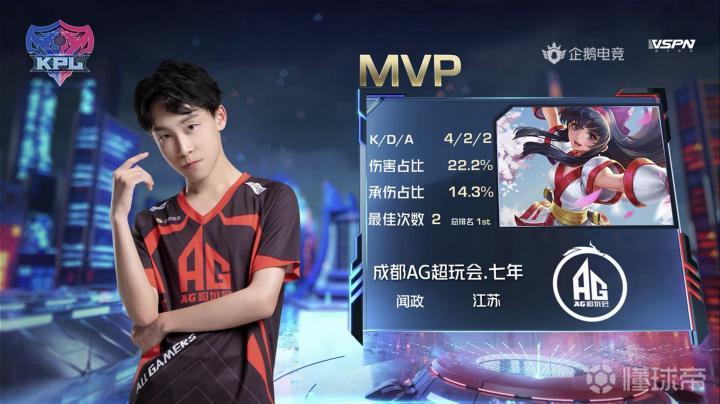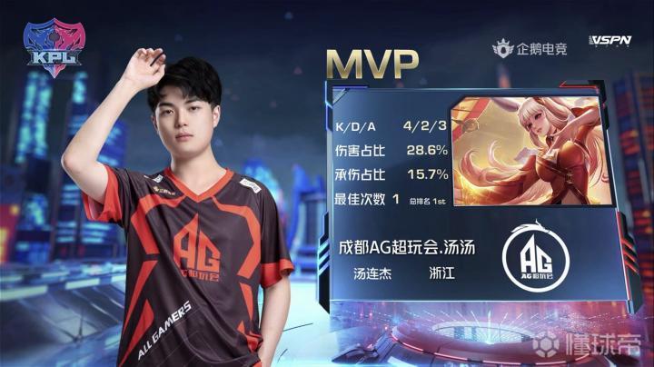 本局最佳给到成都AG超玩会.汤汤/公孙离