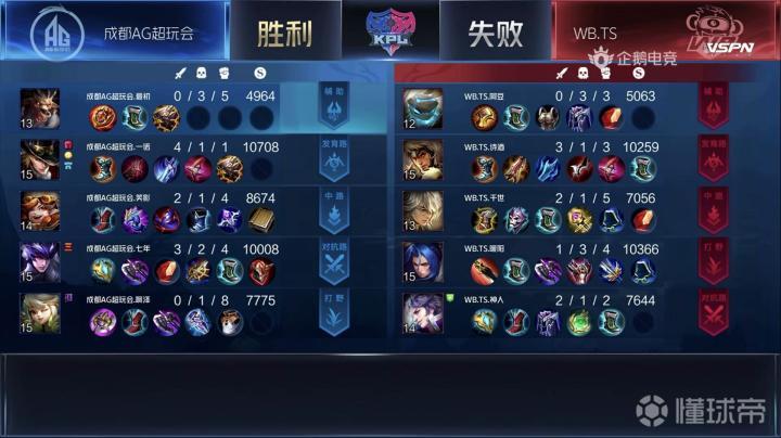 KPL秋季赛成都AG超玩会3-0零封WB.TS,拿到本赛季开门红