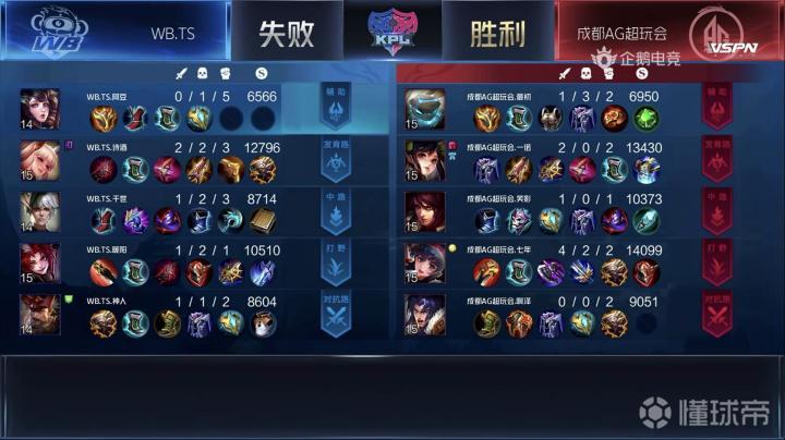 电竞赛事战报2020KPL秋季赛常规赛,成都AG超玩会 vs WB.TS。