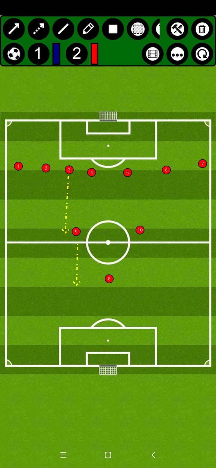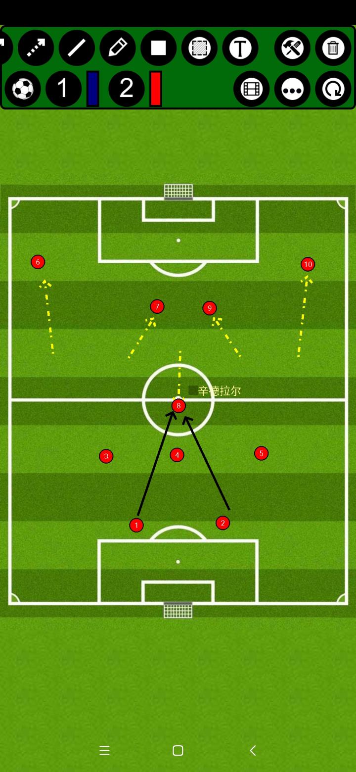 起初,大家都是用1-2-7阵型,随后苏格兰觉得单后卫并不能满足他们传球的需求,于是便撤回一名前锋,用2-2-6阵型,并让内锋回撤进行接应。