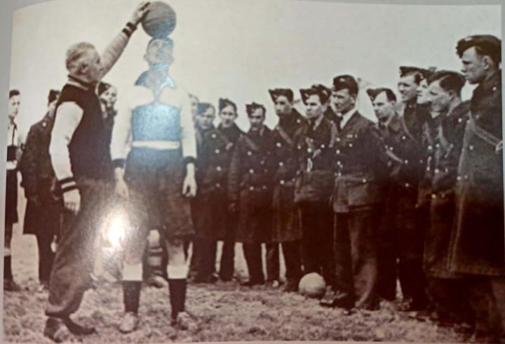 霍根在给队员示范头顶球技巧