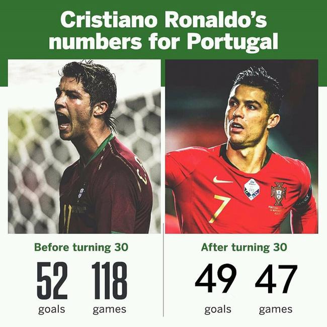 更可怕的是,C罗在年满30岁之后,在国家队更贡献了惊人的输出,47场狂轰49球。可以说,他是凭借自己的转型和逆天的状态保持能力熬过了葡萄牙相对低潮的时期,迎来了好主帅坐镇、青年才俊频频涌现的黄金年代。