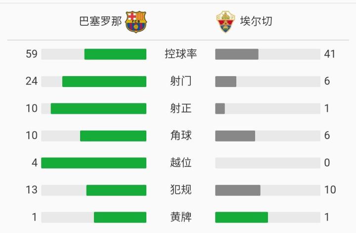 第2分钟,巴萨快速取得进球!阿尔巴左侧底线横敲,格列兹曼前点包抄推射入网。巴萨1-0埃尔切。第12分钟,格列兹曼禁区线附近内切兜射被门将单手托出底线。