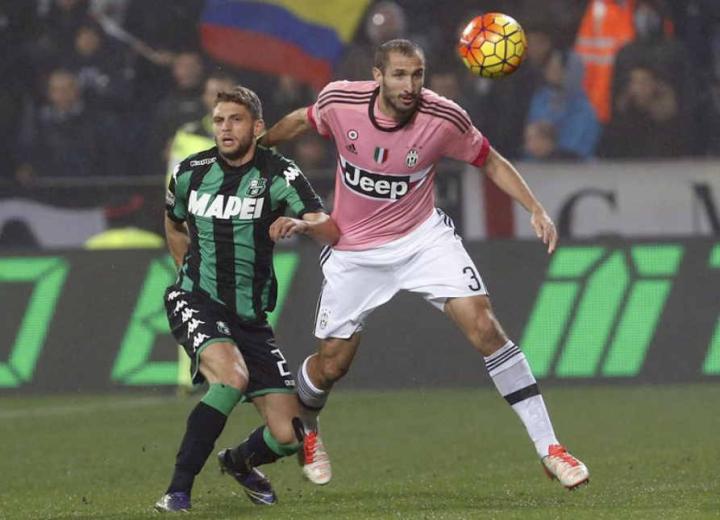 (图)贝拉尔迪在比赛中和基耶利尼拼抢