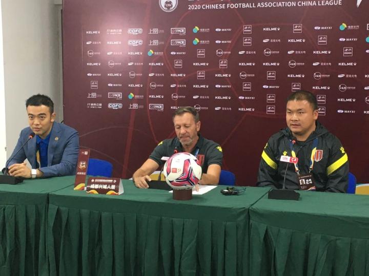 北京时间9月20日,中甲联赛第三轮,成都兴城2-1击败泰州远大,获得三连胜,赛后成都主帅卡洛斯出席了发布会。