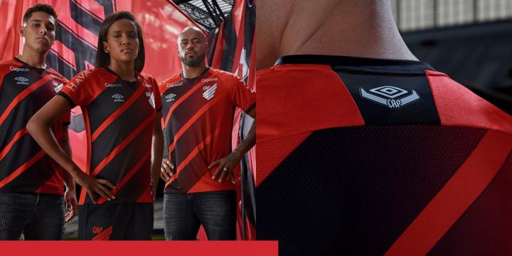 巴拉纳竞技全新主场球衣以红色为主色,球衣上加入带有渐变效果的斜纹,其设计灵感源自于球队绰号“飓风”(Furacão),同时与胸前的俱乐部徽章形成呼应。背后衣领下方加入被飞翼环抱的umbro Logo与俱乐部名称缩写“CAP”组成的徽章。