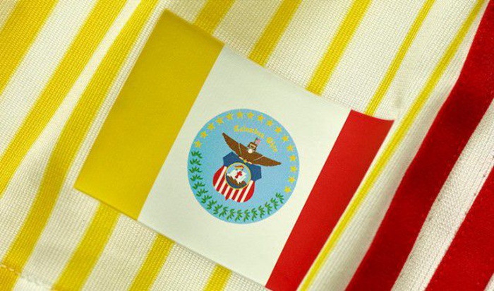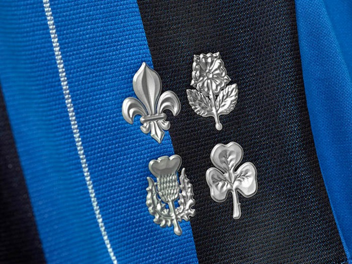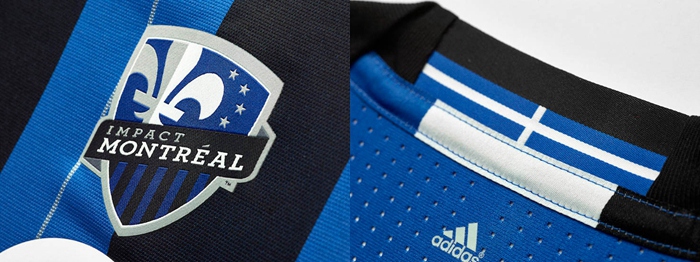 球衣衣领内加入蓝底白十字的魁北克省旗帜,展现这支来自加拿大的MLS球队的特殊身份。球衣左下摆加入四朵银色花朵,这一设计来源于蒙特利尔市市旗。