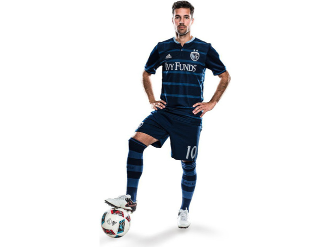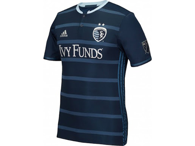 新赛季堪萨斯城客场球衣引入了一个优雅的设计,球衣从队徽的设计中汲取灵感,深蓝色球衣搭配浅蓝色横条纹设计,与队徽中的条纹设计相同。