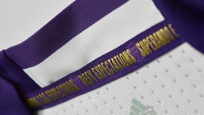 新赛季奥兰多城客场球衣以白、紫、金三色共同构成了一个简洁明快的设计。球衣以白色为底色,V字形衣领和衣袖使用高贵的紫色,袖口加入金色镶边装饰。