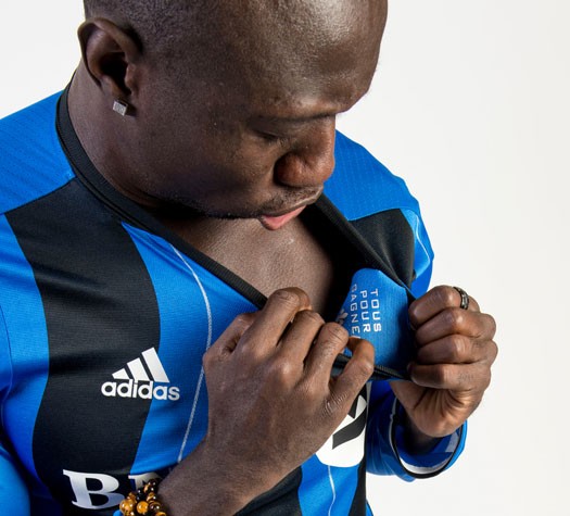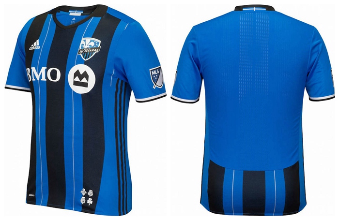 新赛季蒙特利尔冲击主场球衣设计灵感来源于2013赛季球队第二客场球衣,球衣采用蓝黑剑条衫,并加入白色细线装饰,袖口加入黑白两色镶边。
