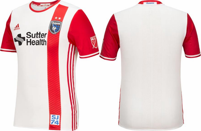 球衣领内加入了Unity(团结)、Devotion(奉献)和Heritage(传承)的字样,并且加入了俱乐部前身圣何塞冲击队的队徽。衣服下摆处的“SJ74”字样则是为了纪念1974年成立的圣何塞地震队。