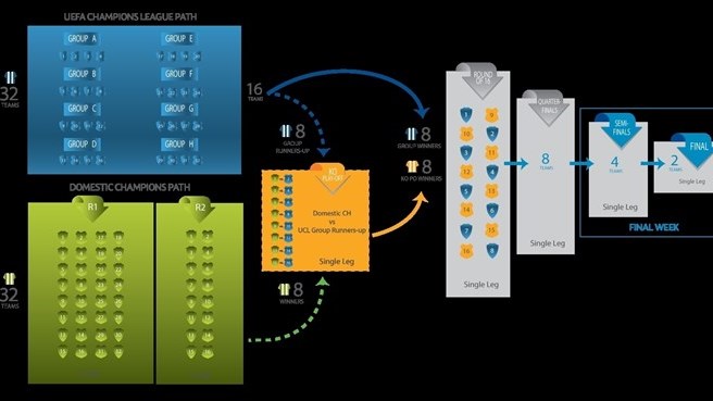 还有32支球队是国内青年联赛冠军,这些球队的晋级之路被称为“国内冠军途径”(Domestic Champions path)