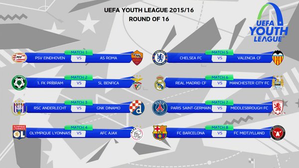 本赛季欧足联青年联赛1/8决赛的抽签刚刚结束,包括皇马、巴萨、切尔西、曼城等豪门以及安德莱赫特、巴伦西亚、里昂、本菲卡和阿贾克斯等青训大户入围。