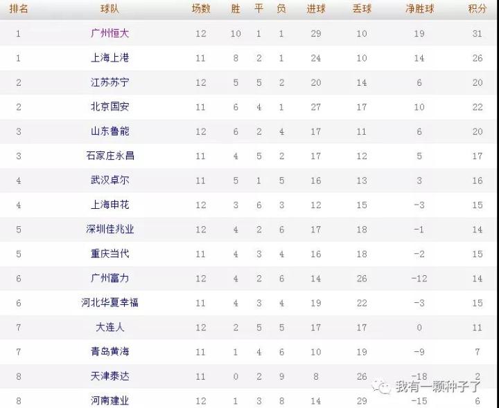 从积分和净胜球数据来看,广州恒大积分第一,进球第一,失球在少赛一场的情况下和上海上港并列第一。