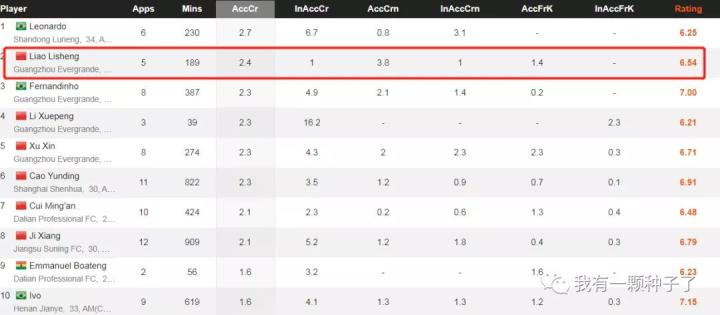 在传球数据上,本赛季廖力生的传中准确率(70.6%)、角球准确率(79.2%)和任意球准确率(100%)简直出乎意料的高,甚至可以直接称为中超第一了。虽然因为廖力生出场时间有限这个数据存在较大误差的可能性,但这个准确率也已经足够吓人。