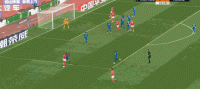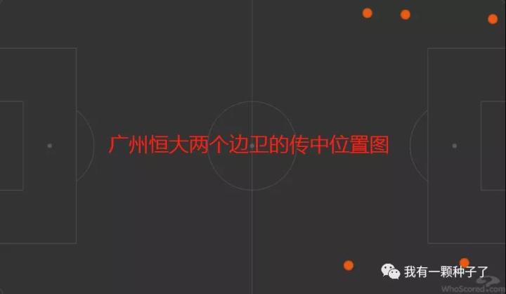 上图是本场比赛广州恒大两个边卫的传中位置图,高准翼有三次传中,张琳芃有两次。在左边卫位置上的高准翼,其实已经慢慢地掌握了左脚传中的能力,虽然这个能力尚不纯属。而一个左右脚均衡的边卫,其威胁和价值是远比单脚边卫要强得多的。