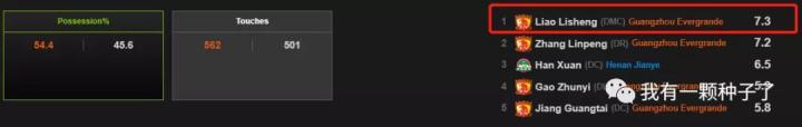 本场比赛,拖后位置的廖力生是球队处理球的后场核心,踢了70分钟控球率7.3%全场第一。