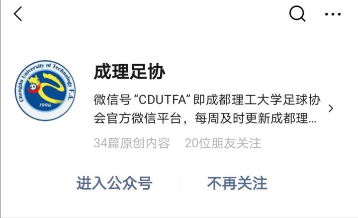 新浪微博@成都理工大学足球协会,用于发布校内联赛比赛战报以及视频。