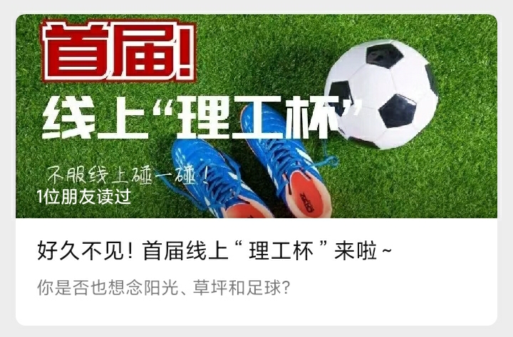 成理足协很重视校内足球氛围的建设,致力于让每一个成理足球爱好者都能感受到成理浓烈的足球氛围,成理足协在疫情期间,为了让成理学子浓烈足球活动的氛围,举办了“线上理工杯”,让在家的足球爱好者们也可以大显身手!