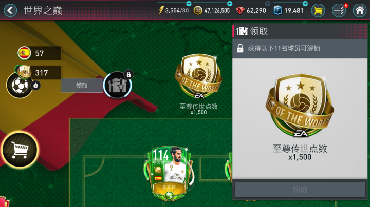 在本章节通过赛事获取西班牙点券来兑换西班牙的世界之巅球员,如果集齐该阵容的所有球员即可免费领取1500至尊传世点数,用以兑换本次活动全新登场的至尊传世典藏球员。