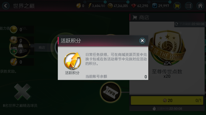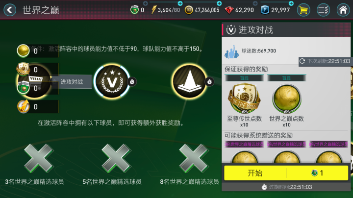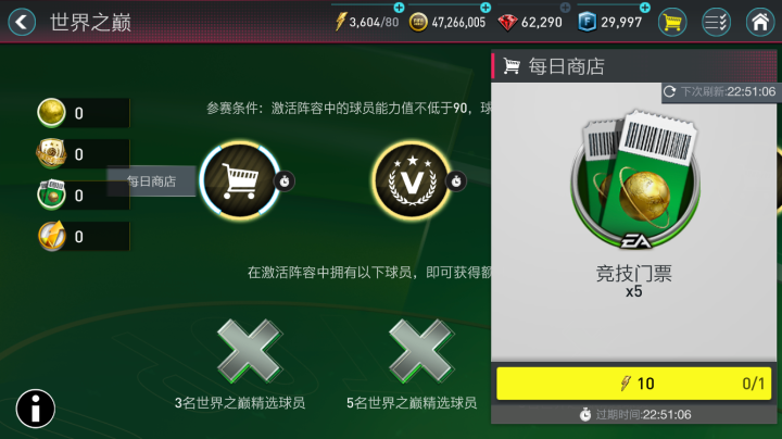 点击进入后,在活动的主章节,大家可以通过消耗体力进行技巧赛和锦标赛,以获得世界之巅点数,世界之巅点数可以在本章节右侧兑换材料和转会费。