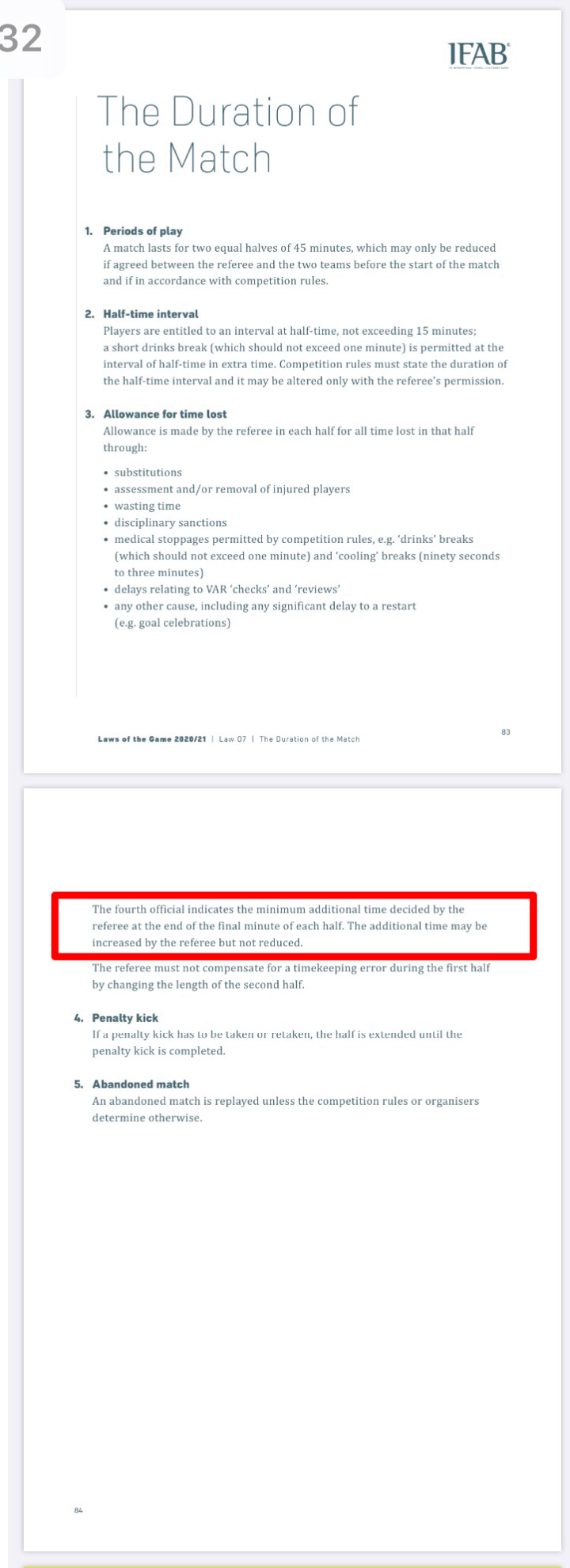 (图)IFAB《2020/2021足球竞赛规则》第七章 – 比赛时长