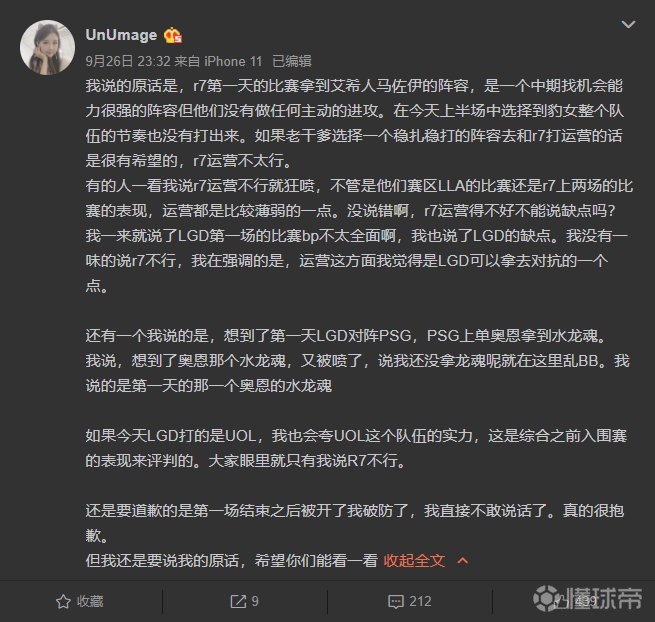 如果今天LGD打的是UOL,我也会夸UOL这个队伍的实力,这是综合之前入围赛的表现来评判的。大家眼里就只有我说R7不行。