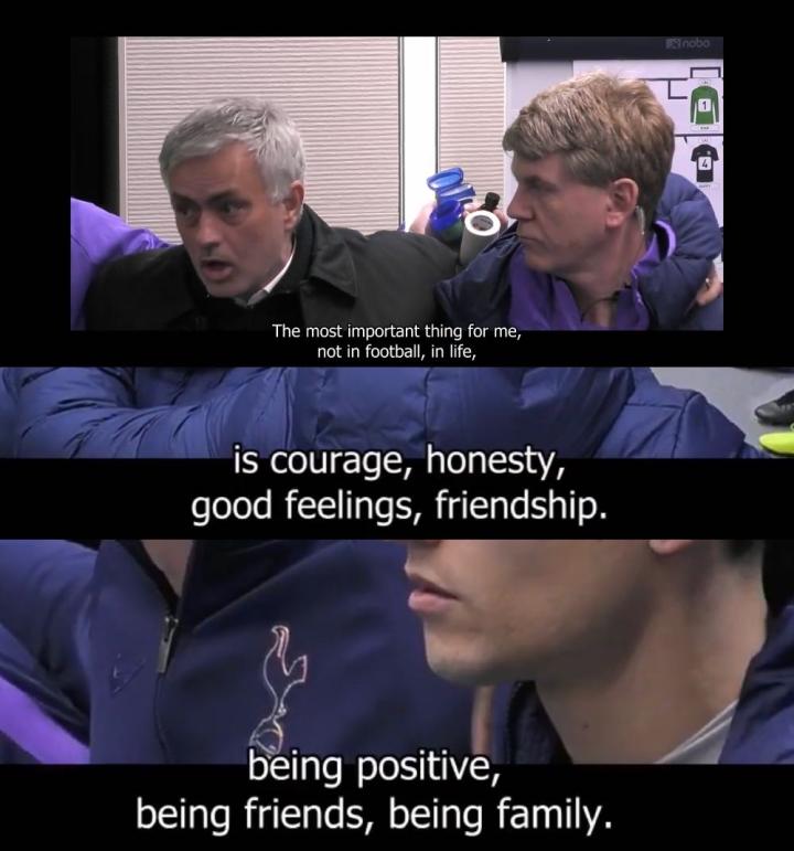 “The most important thing for me,not in football,in life,is courage honesty,good feelings,friendship,being positive,being friends,being family.”