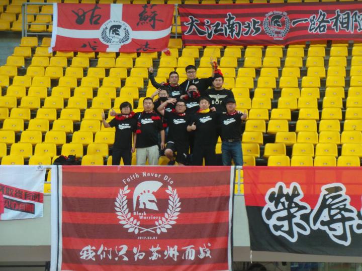 远征军在成都赛场为球队不遗余力地呐喊助威,苏州的第二现场也同样吸引了数十名热心的球迷前来观赛,为球队加油。