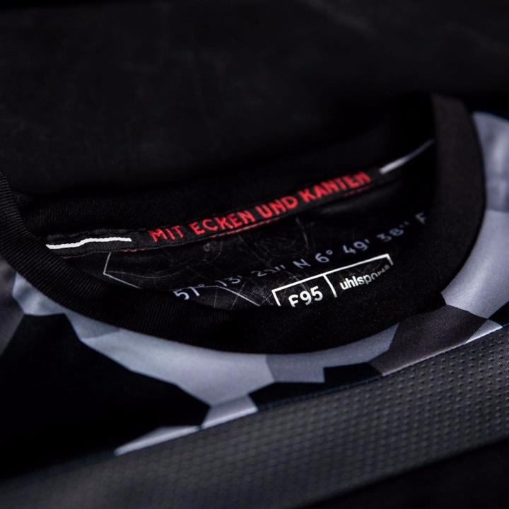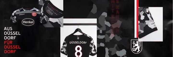 杜塞尔多夫全新第二客场球衣以黑色为主色,受州府50个地区启发所,球衣肩部和衣袖上的灰、黑两色迷彩花纹。样式简约的圆领内加入俱乐部曾经的主场——保罗·简斯球场(Paul-Janes-Stadion)的经纬度坐标,衣领包带上“Mit Ecken und Kanten”展现了杜塞尔多夫的城市精神。背后衣领下方加入杜塞尔多夫市徽章与象征市旗的红白两色条纹,后背上则是用德语书写的城市名称“Düsseldor”。