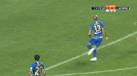 对于倒地时手球也要分类讨论:如果手臂仅用于支撑,且没有横向或纵向展开,不犯规;如果手臂有横向或纵向的展开,则为手球犯规。由于这种情况在第一阶段的比赛中非常罕见,小编能够想到的只有建业外援卡兰加进球被吹的判例,就只能拿这个举例了。可以看到卡兰加在倒地时手臂碰球,且手臂仅用于支撑,没有展开,但由于其手球后直接形成了进球得分的机会,随后立即进球,故手球犯规,进球无效的判罚正确。换句话说就是,如果这样的手球出现在防守方球员上,则不能判罚手球犯规。