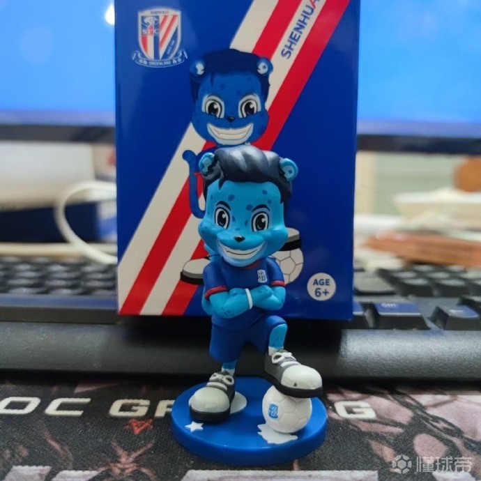 博主曝光申花新版吉祥物:脚踩足球的蓝色花豹