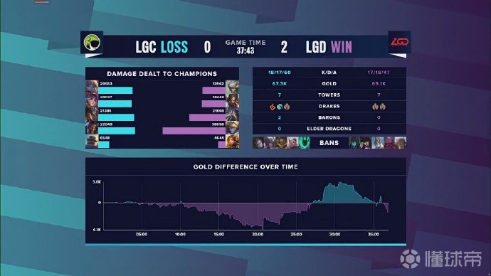 第37分钟,LGD打出一波2换5后成功一波结束比赛完成翻盘。LGD手握三个赛点。