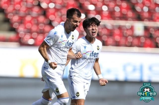第11分钟,仁川利用人数上的优势率先进球,阿吉拉尔后场将球传至禁区,金俊凡扣过对手后将球打入,仁川客场取得领先。